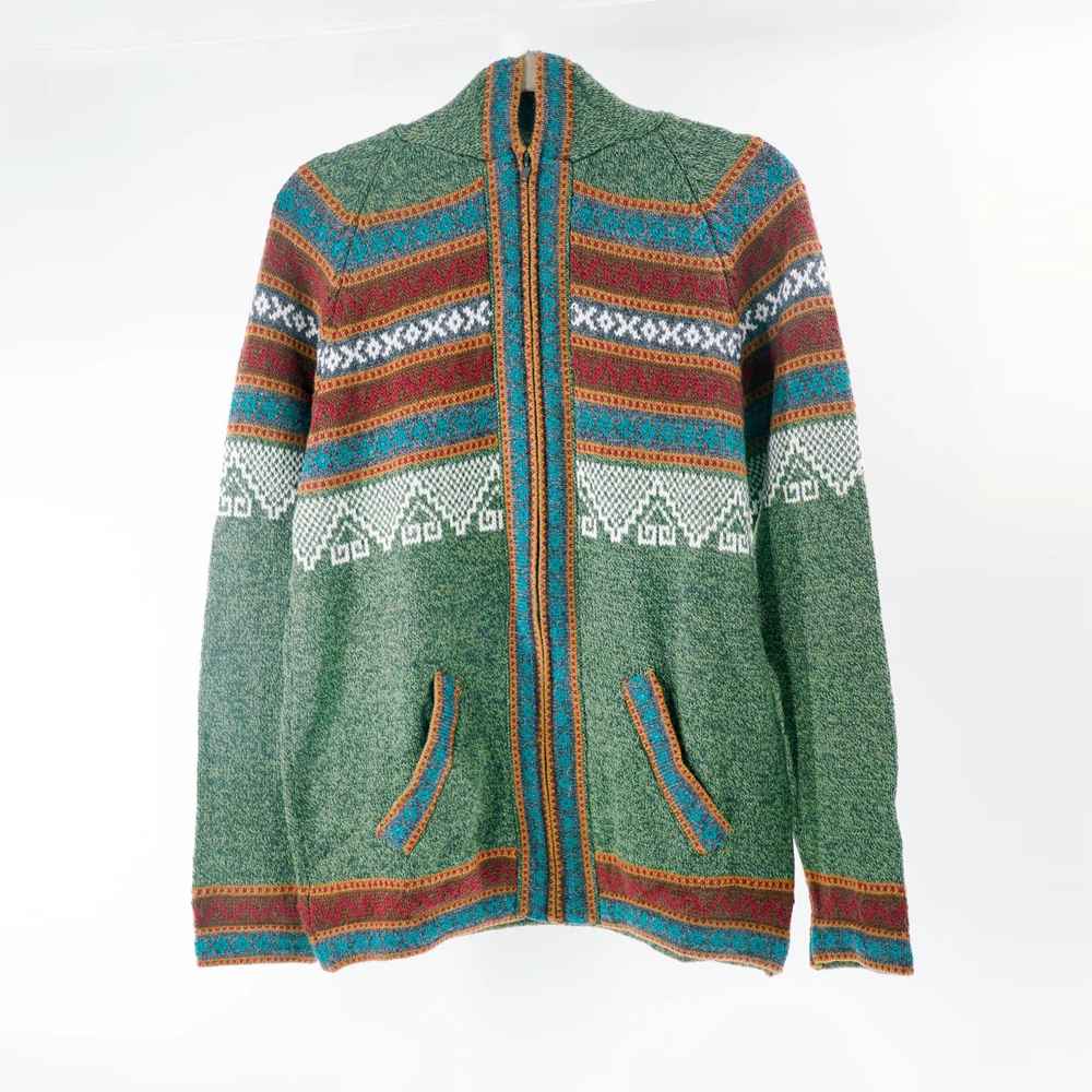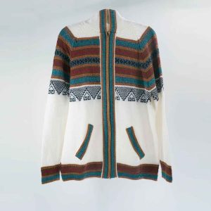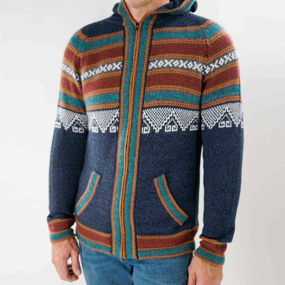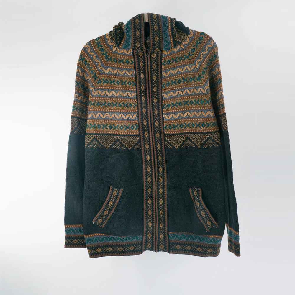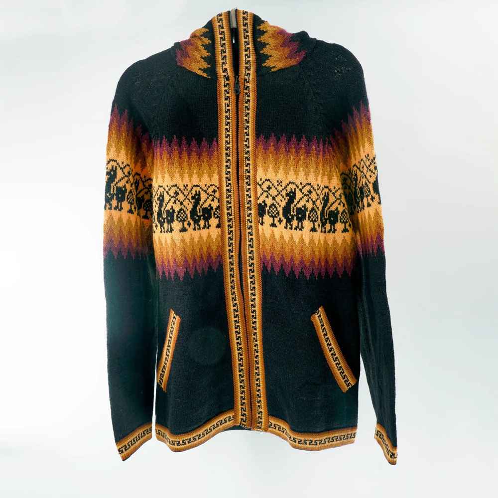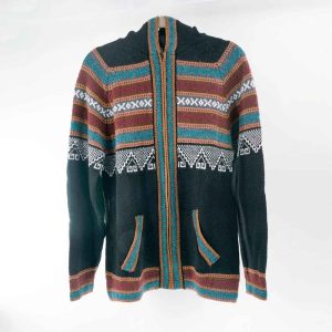 Alpaca blended wool jacket with hood and waist to neck zipper, pockets, soft to the touch. Unbelievably warm and perfect for layering in cold weather. People rave about these beautiful sweaters and receive many compliments. Stylish and unique, the patterns and unique styles work with all types of outfits.